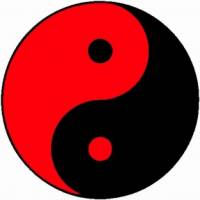 Das Taiji-Zeichen - Ein Symbol des Taoismus. Manche Varianten davon werden in Deutschland manchmal auch „Yin-Yang“ Zeichen genannt. (Aus dem Artikel über Daoismus